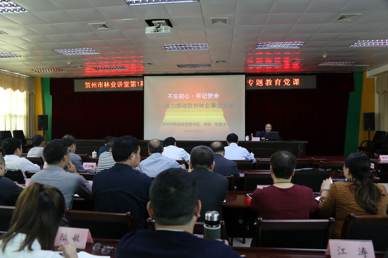 贺州市森林公安局、贺州市能源办、贺州市林科所、贺州市姑婆山林场、贺州市木材公司,各科室(部门),各党支部党员干部共100多人聆听了党课。