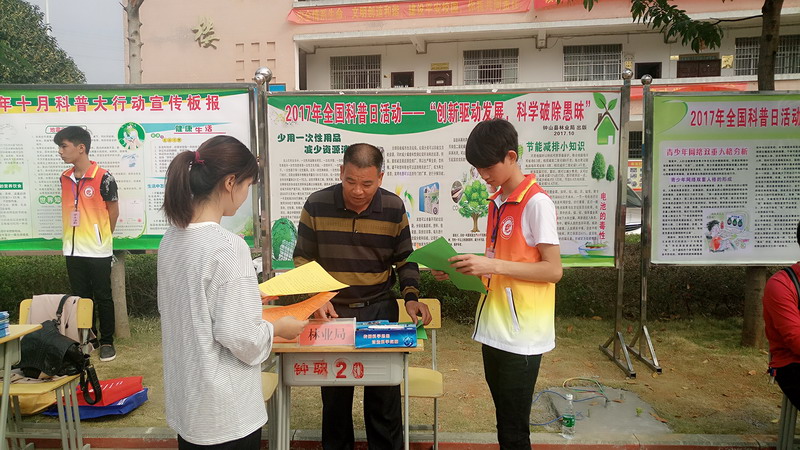 10月25日,钟山县林业局以"十月科普大行动"为契机,以"创新驱动发展,科学破除愚昧"为主题,积极开展2017年科普日宣传活动。